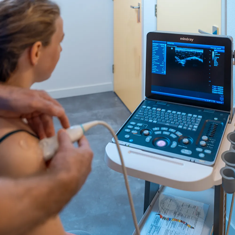 Uw therapeut zal altijd eerst het normale fysiotherapeutisch onderzoek bij u afnemen. Mocht op basis van de conclusies uit dit onderzoek aanleiding zijn om meer duidelijkheid te verkrijgen middels echo zal uw therapeut dit met u overleggen. Echo-onderzoek wordt bij ons uitsluitend uitgevoerd door hiervoor opgeleide therapeuten.